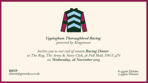 Kingsmoor have pleasure in inviting Kingsmoor Club members to the inaugural celebration dinner of Uppingham Special and Uppingham Flyer flat racing syndicates, that are powered by the Kingsmoor Bespoke product.