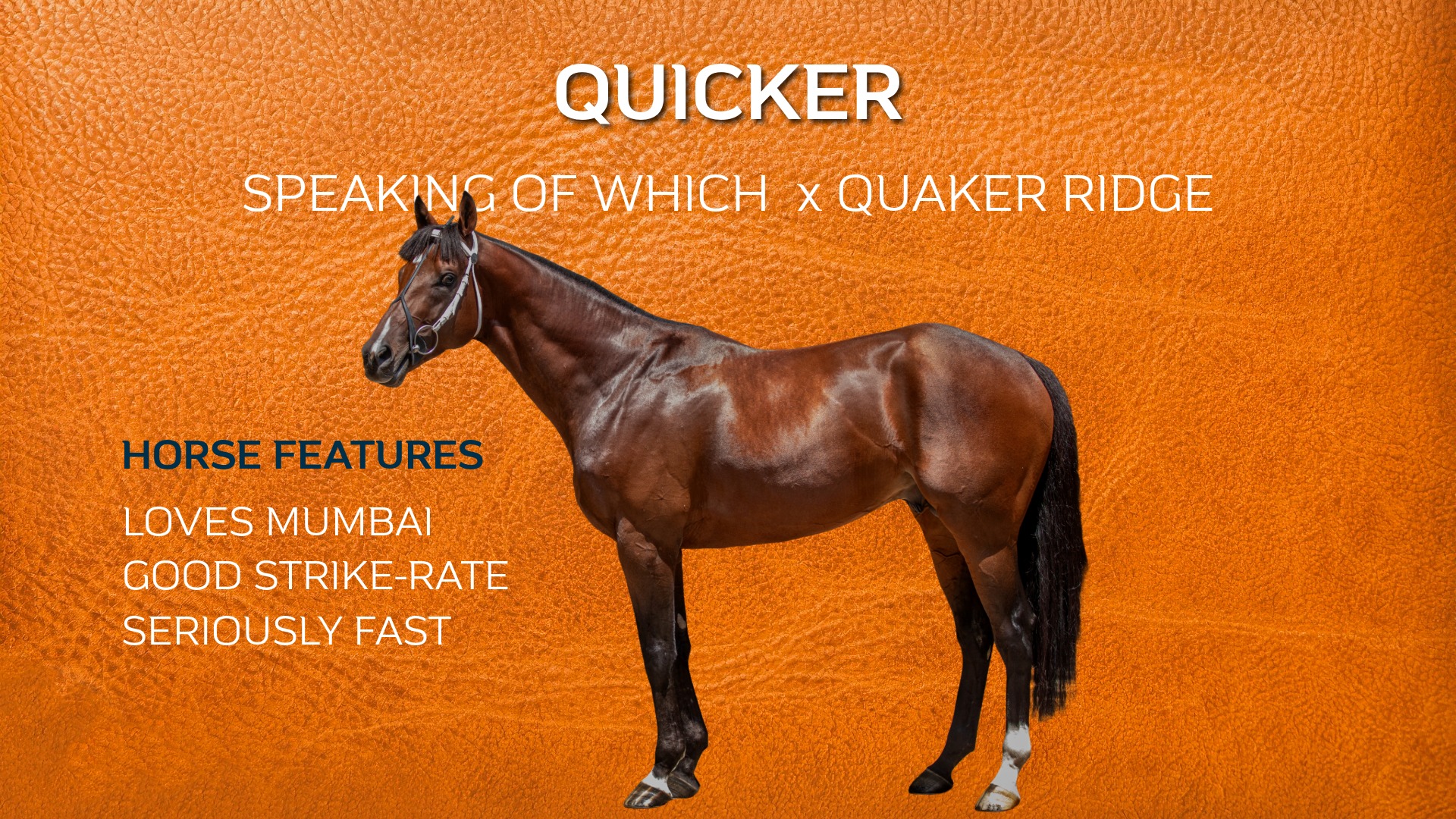 Quicker, who is by stallion Speaking Of Which, has a penchant for sprinting and has done all of his winning over five and six furlongs.